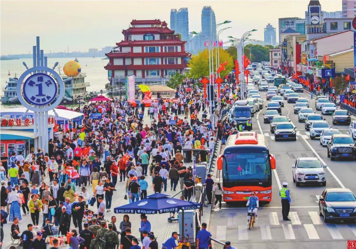 图③:“双节”期间,丹东鸭绿江畔人气爆棚,成为热门打卡地。本报特约记者 周广庆 摄