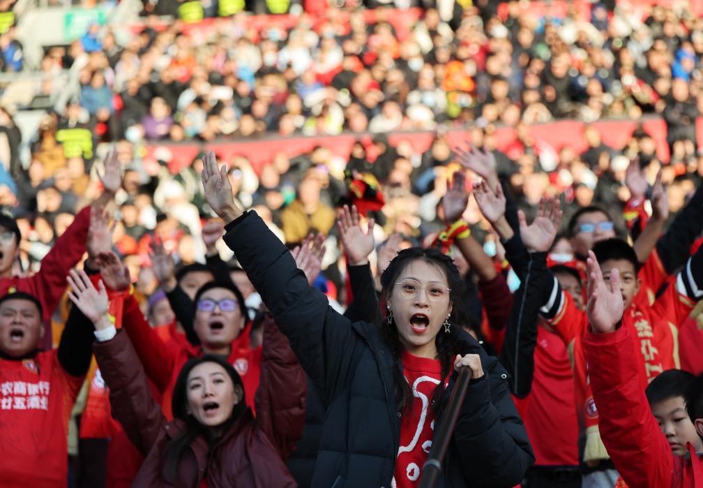 10月26日,辽宁铁人队球迷在看台加油助威。新华社记者 李钢 摄