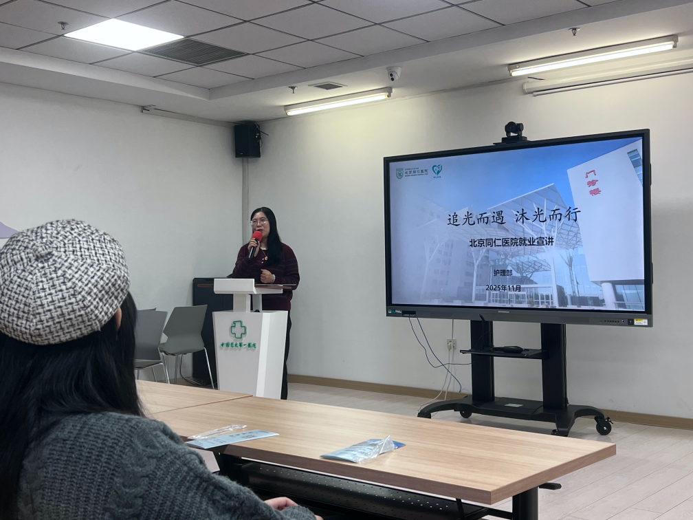 宣讲会现场,北京同仁医院的工作人员详细介绍了医院的发展历程、学科建设、医疗技术、科研成果及人才培养体系等多方面内容。相关负责人介绍,北京同仁医院在眼科、耳鼻喉科等多个医学研究领域处于领先地位,能够为患者提供优质的医疗服务,为医学人才提供广阔的发展空间与良好的职业前景。