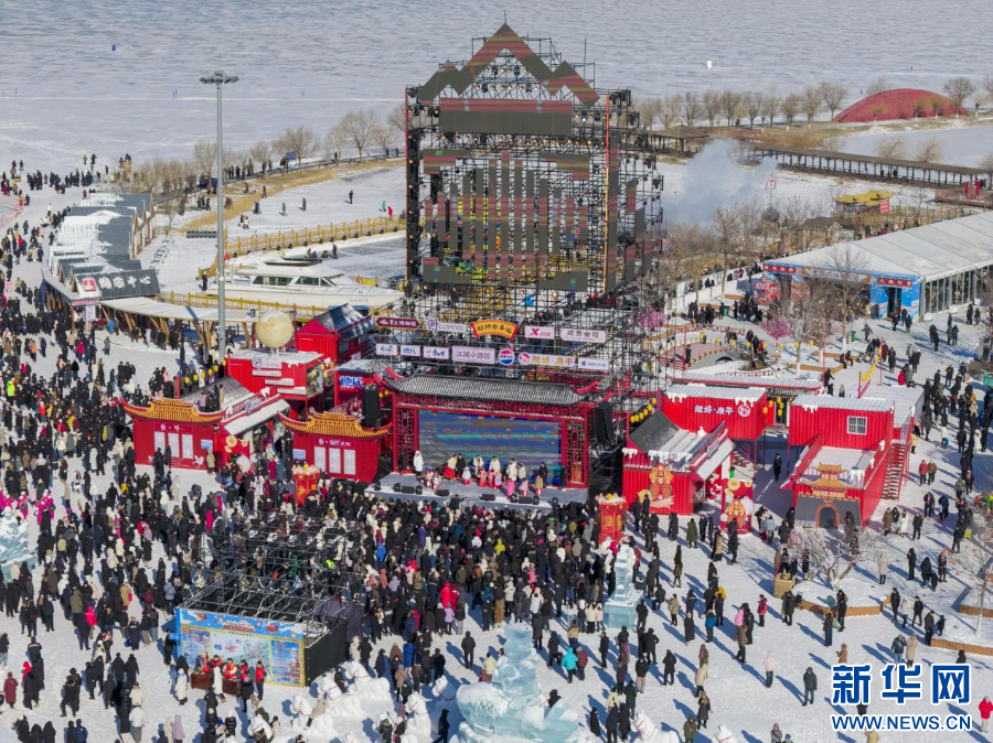 图为“捺钵千年渔猎 相约冰雪康平”2026第十一届沈阳卧龙湖冬捕季启动仪式现场。新华网发
