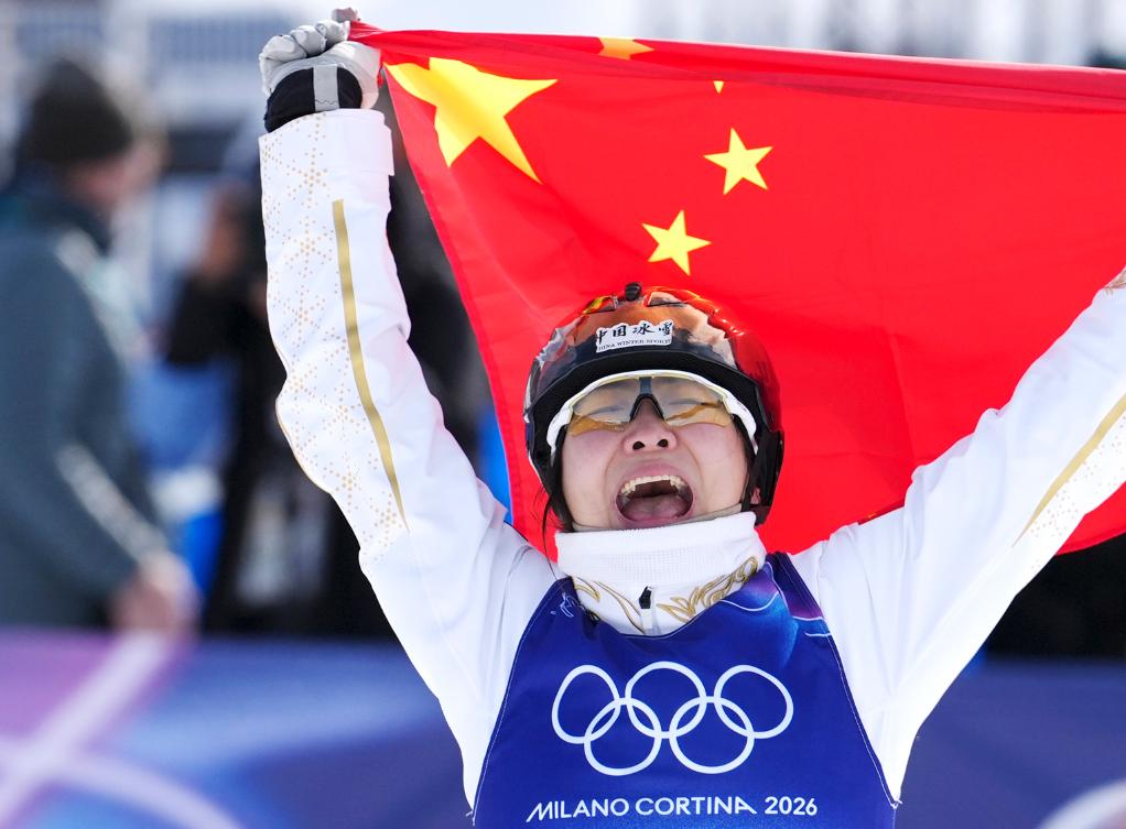 2月18日,冠军中国选手徐梦桃在比赛后庆祝。新华社记者 胡超 摄