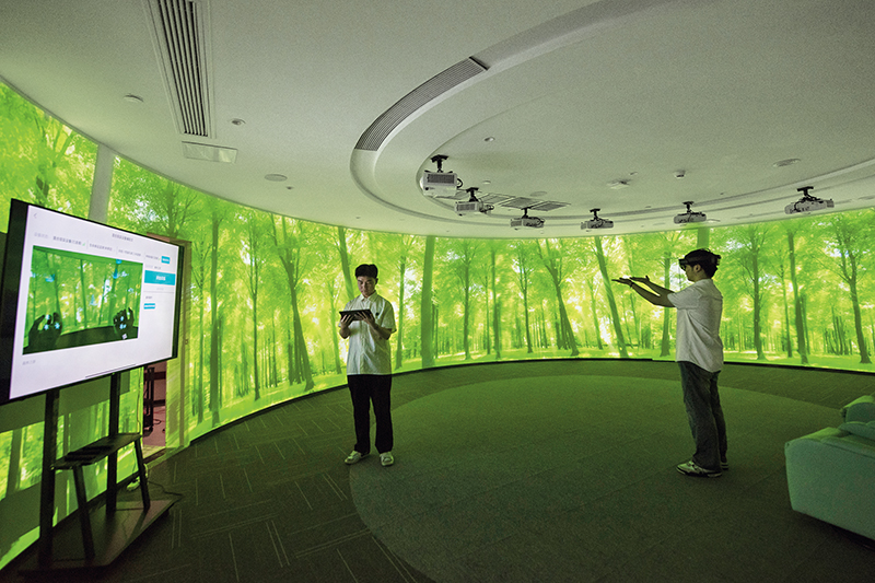 在位于安徽省芜湖市的“中国视谷”,安徽睿酷医疗科技有限责任公司的工作人员在演示疼痛缓解康复训练软件(2024年9月20日摄)新华社发(肖本祥摄)