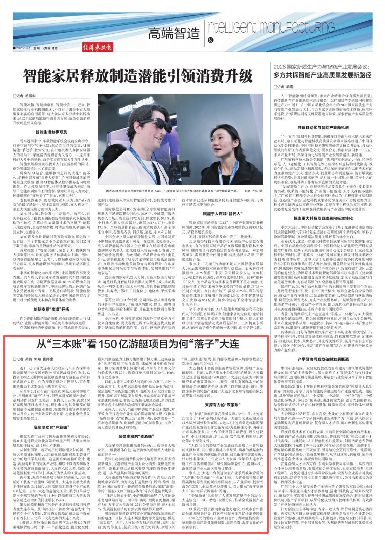 新华网沈阳4月14日电(记者 吴蔚 郭翔 崔师豪)4月13日出版的《经济参考报》发表题为《从“三本账”看150亿游艇项目为何“落子”大连》的重点报道,全文如下:
