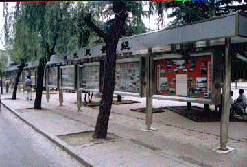 面橱窗,下面有15面橱窗,延伸到背面达80多米。下面反映李家街道自1981年组建以来,两个文明建设取得了的丰硕成果,
