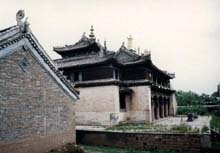 惠宁寺属臧传佛教中的喇嘛庙。该寺位于辽宁省北票市城东南十五公里处的下俯蒙古营乡下府村。这是一座规模宏伟、建筑秀丽、金碧辉煌、风格独特的清代建筑群。该寺座北朝南,南面波涛汹涌的大凌河,东临川流不息的看牦牛河,西傍是潺潺如带的凉水河,北靠绵延起伏的端木塔北山,这是一块前有黑峰(山名)照,后有端山靠的风水宝地。惠宁寺内钟鼓楼对峙,双旗杆对应,苍松翠柏、郁郁葱葱、鹊噪花艳、古色古香、松涛乐韵、高僧诵经,是辽西大地上的一棵明珠。