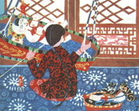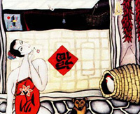 “养活孩子吊起来”,是说将生下来的小孩,放在“悠车子”中摇晃,可以代替母亲抱着看护,这倒是一种既能充分利用屋空间,又能解放母亲劳动力的比较科学的方法。悠车子是长椭圆形,l米多长,下有床底,四周有护栏,铺好被褥,小孩躺在里边既舒适又安全。将悠车用四根麻绳拴好吊到天棚木杆上,推一把悠车便来回摆动,小孩在里边悠哉游哉,不哭不闹。现在除个别乡村外,已经很少有人采用这种方式。