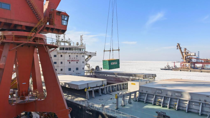 新春走基层|破冰运粮,“北粮南运”枢纽港车来船往