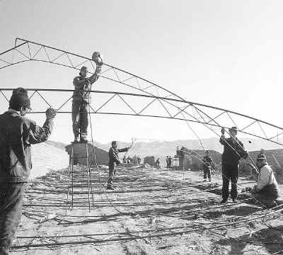 辽宁锦州今年以来通过各种渠道安置就业人数达4万多人。上图为工人们在农村建高标准大棚。(孟庆裕
