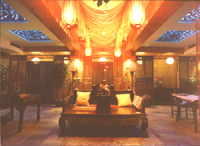 二层楼阁古香古色,有中央大厅,有窗扇、门扇采用明清时代的真品,明清式桌椅使茶馆更富有文化韵味和神秘感。20多间茶室和贵宾包房各俱特色。文人墨客,琴棋书画四处陈列的古艺饰品令人目不暇接。