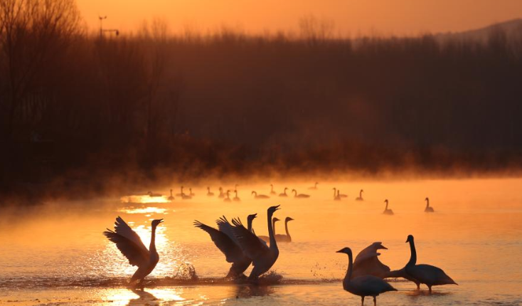 辽宁朝阳:大凌河畔 天鹅翩跹