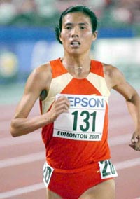 2001年第九届全国运动会上,女子5000米和10000米冠军。