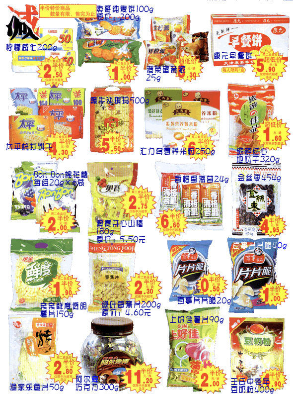 中兴超市半价商品销售活动由每天上午9:00,下午13:00开始