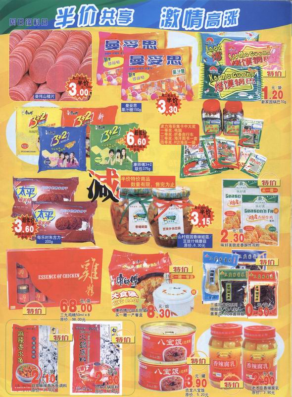 中兴超市半价商品销售活动由每天上午9:00,下午13:00开始