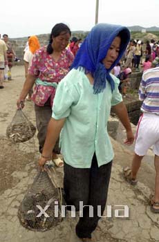 赶海归来的女人,匆匆奔向集市(摄影:任勇)
