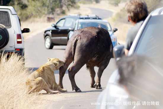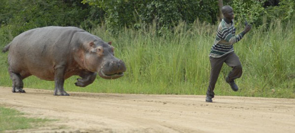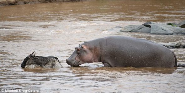 河马救助溺水非洲牛羚摆脱困境瞬间