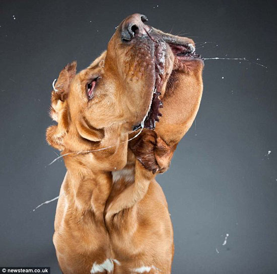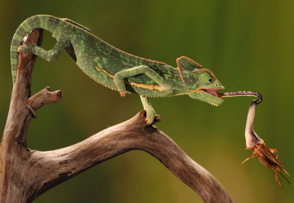 粉色小壁虎舌尖舔食眼球上露珠瞬间